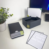 Lege die Karte anschließend in die EDGE Box ein, sodass die Farbkante an der offenen Ecke sichtbar bleibt. Über Zeit entsteht so ein sichtbarer Verlauf deiner Arbeit, deiner Energie und deiner Entwicklung.
