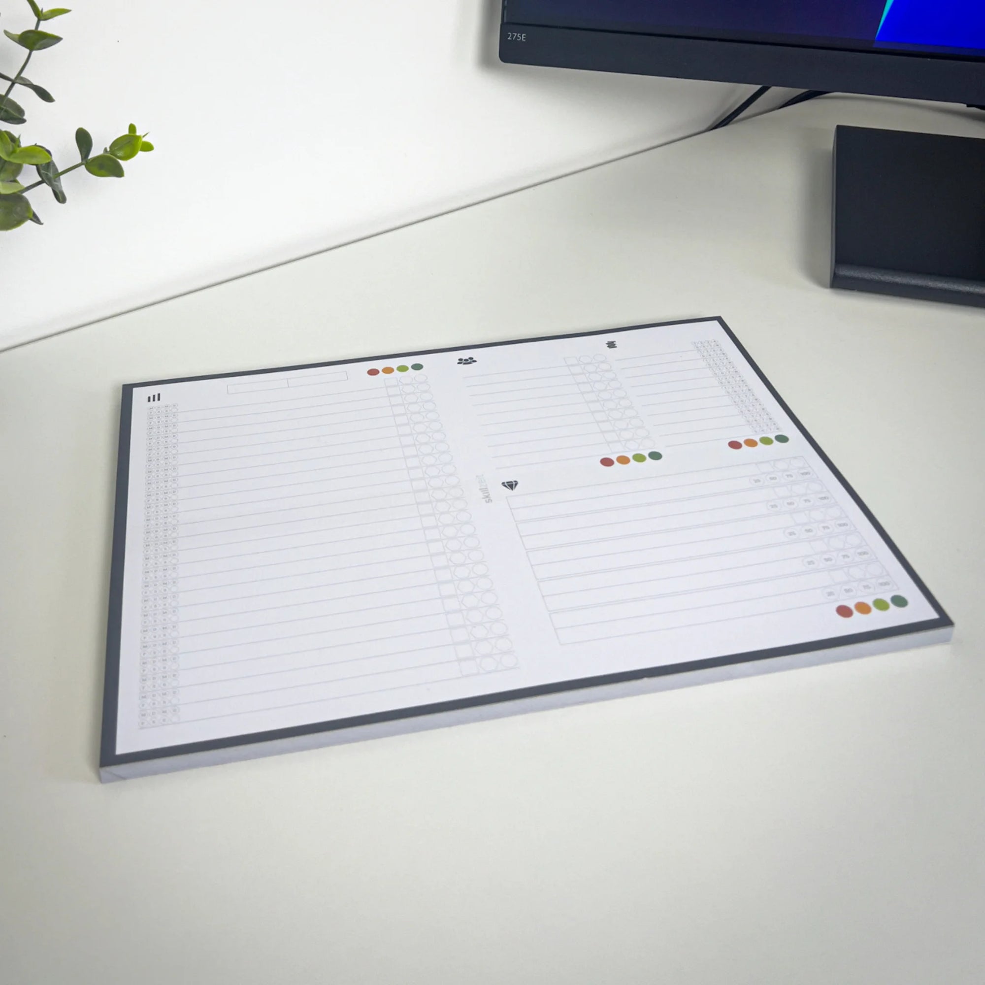 Es vereint auf einzigartige Weise Zielplanung, Aufgabenmanagement, Weiterentwicklung und Journaling und macht den Fortschritt jeder abgeschlossenen Woche dank der intelligenten Reflexionstechnik auf deinem Arbeitsplatz sichtbar. Ein Hingucker mit Mehrwert, der dich dabei unterstützt, in einer zunehmend von KI und Automatisierung geprägten Arbeitswelt den Überblick zu behalten – und deine Wochen wirksam und zielgerichtet zu gestalten.